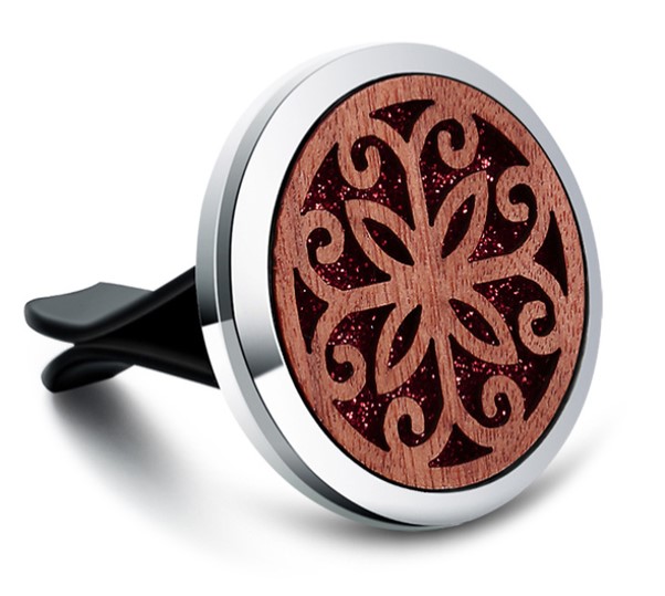 - klipový aroma difuzér do auta, z vysoce kvalitní nerezové oceli v kombinaci se dřevem